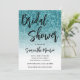 Design de blocos de cores de gradiente de brilho branco e lacrimejante para o seu chá de panela. A letra do script "Chá de panela" do estilo de letra de mão é uma caligrafia contemporânea encantadora a preto. Você pode personalizar todo o texto neste design. O gráfico brilhante é a arte digital que impressão como uma foto no seu convite moderno.