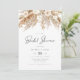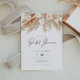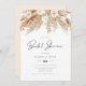 Este chá de panela apresenta pampas aquarelas e florais beges cremosos emparelhados com uma fonte boêmica moderna. Este convite para chás de fraldas é o início perfeito para o seu evento no deserto.