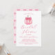 Chá de panela estético coquete com arco rosa e abóbora para uma festa de outono ou Halloween. Personalize-o com os detalhes do seu partido e as informações de RSVP.