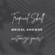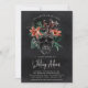 Um chá de panela temático chico assustador do Dia das Bruxas com uma ilustração do crânio floral tropical, coberto por flores laranja e peludas e folhagem verde da selva, num fundo negro enfumaçado. Personalize este chá de panela exclusivo e elegante do Dia das Bruxas com os detalhes de seu evento em caracteres não brancos.