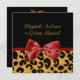 Um chá de panela de padrão de impressão preto-e-ouro de leopardo com um arco de fita vermelho-chic envolvido como um presente. Personalize adicionando o nome da noiva e as informações da parte.