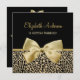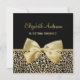 Faça uma declaração de moda com estes chás de panela de ouro e preto com um padrão de impressão leopardo popular e embelezado com uma fita de ouro elegante presa num arco de na moda. Esses convites para chás de panela de impressão de animais glamourosos e modernos podem ser personalizados adicionando o nome da noiva a ser e as informações da parte nas áreas de texto personalizáveis. Imagem impressa em formato plano, não faixa real. Direitos autorais originais de ©PTKDesign