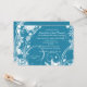 Um convite para o inverno com fundo azul com flocos de neve e botões de flores brancas e folhagem em branco. Adequado para qualquer celebração de inverno. O cartão é fácil de personalizar com seu texto, fonte, cor da fonte e escolha de seis tipos de papel.