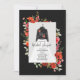 Design de monograma de casamento botânico com vegetação e flores silvestres, incluindo papoilas e margaridas com fundo escuro. Ilustração da jaqueta de couro com forma de coração "até a morte", design de papoila e vestido de noiva.