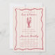 Nosso chá de panela de lagosta é perfeito para sua celebração à beira-mar! O design litorâneo apresenta letras vermelhas no verão e ilustrações em uma faixa de cor de pêssego pálida. Um rabisco de lagosta desenhado à mão senta-se sobre os seus detalhes de eventos, enquadrado por uma borda ondulada de vieiras. A frase "tudo o que você precisa é amor e lagosta" agita o topo, acrescentando um doce toque final a este chá de panela costeiro de verão.