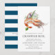 Um conjunto de convites de chá de casal com tema de fervura de lagostins para o seu próximo churrasco ou festa relacionada a frutos do mar. Estes convites apresentam texto preto simples, juntamente com uma ilustração única de lagostim centralizada no topo. No verso do convite há um padrão listrado azul oceano e branco. Todos os elementos deste convite são ajustáveis usando a função de personalização. Divirta-se adicionando seus próprios detalhes e tornando-o seu.