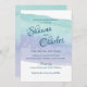 Esta design de aquarela azul e roxa é perfeita para um casamento de destino tropical. O design simples e moderno apresenta aqua e aquarela roxa com fundo branco. É combinado com um layout de texto único para um moderno sentimento à beira-mar.