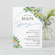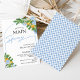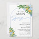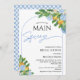 Chá de panela de limão com arco azul moderno Ela encontrou seu chá de panela principal com flores azuis e brancas, limões e folhagem em dois cantos e um arco azul. Ideal para primavera ou chá de panela de verão.