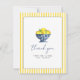 Limões aquosos, brilhantes e alegres, em taças azuis e brancas, com cartões de agradecimentos plano Chá de panela de borda branca e amarela, com o nome das noivas e o obrigado que você envia no verso. Você pode excluir a mensagem e incluir sua própria mensagem ou excluir.