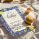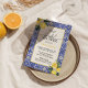 Chá de panela de limão mediterrânico, Convite principal à compressão Este adorável convite apresenta uma peça única, pintada à mão, de azul escuro e azulejo amarelo, com limões de cor d'água! Com um sotaque da tipografia moderna, este tema inspirado na Costa Amalfi Francesa é perfeito para qualquer estação!