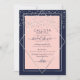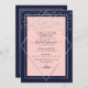 Este elegante e moderno convite de festas de chá de panela de casamento é ideal para um evento clássico e formal. Ele apresenta um confete cinza-prateado cintilante impresso em falso, espalhado sobre um fino diamante geométrico e uma borda retangular com uma borda azul marinho por baixo e um preenchimento cor-de-rosa pincelado. É chic, luxuoso, bonito, simples e moderno; o design perfeito para o seu dia especial. ***NOTA DE DESIGN IMPORTANTE: Para qualquer solicitação de design personalizada, como solicitações de correspondência de produtos, alterações de cor, mudanças de posicionamento ou qualquer outra solicitação de alteração, clique no botão "MENSAGEM" ou envie um e-mail ao designer diretamente em lafemme.art@gmail.com. Você pode até enviar um e-mail para ela solicitando um design completamente personalizado e novo.