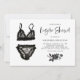 Convite para chá de tema preto e branco. Apresenta a ilustração aquosa da lingerie preta e flores pretas com caligrafia moderna. Personalize adicionando nomes, data, hora, local e outros detalhes do evento. Este chá preto de lingerie é perfeito para qualquer tema de chá de panela.