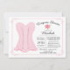 Chá de panela de Lingerie moderna com um conjunto de cadarços de rendas rosa sobre um fundo branco-quic com um realce floral rosa bonito e uma estrutura balnear. Sacudir o convite do nosso chá de panela lingerie para ver uma correspondência de volta para um toque especial extra. Perfeito para uma queda, inverno, primavera ou chá de outono.