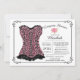 Chá de panela moderno com impressão preto e rosa-chita e colchete de rendas colocado sobre um fundo branco-chic com um bonito sotaque floral rosa e um quadro branco. Sacudir o convite do nosso chá de panela lingerie para ver uma correspondência de volta para um toque especial extra. Perfeito para uma queda, inverno, primavera ou chá de outono.