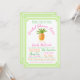 Chá de panela de abacaxi com abacaxi bonito sobre um verde limão fresco e fundo branco. Este chá de panela de luau é facilmente personalizado para o seu evento, simplesmente adicionando os seus detalhes no estilo de letra e na redação da sua escolha. Você também pode adicionar uma cor de fundo e remover ou redimensionar o abacaxi no verso. Este é um design impresso sem folha de alumínio real, brilho, etc.