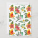 O Havaiano Luau temia chá de panela. O convite apresenta dançarina de hula e padrão de flores tropicais atrás.