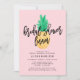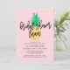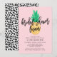 Convide amigos e família para o seu chá de panela luau com convites para chás de panela divertidos. Os convites de luau de chá de panela apresentam um abacaxi de cor d'água, fundo rosa, fonte de script de tendência, espaços reservados para o seu texto personalizado e um padrão de pontos preto e branco em negrito na parte traseira do convite.