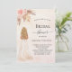 Um fundo rosa dourado, cor-de-rosa-claro. Uma noiva, rosas cor-de-rosa, grama-pampas. Personalize e adicione um nome e detalhes da parte.