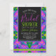 Funky e blacklight inspiraram um padrão geométrico roxo, azul-indigo, rosa e verde brilhante. O convite para chá de panela de música fúnebre festival serviria a um chá de panela noturno, chá de pontes de embate, e especialmente para o evento de chá de panela da festa de dança. Criado enquanto ouvia música Psybient, chilreando - Configurado por Webgrrl.art