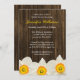 Um chá de panela com tema country apresentando flores daffodil brancas e amarelas sobre um fundo de madeira marrom.