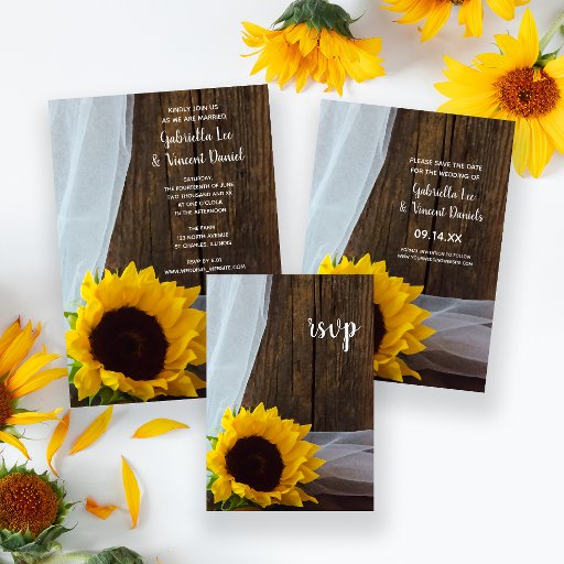 Rustic Sunflower Barn Wood Wedding StationeryCriado por Lora Severson