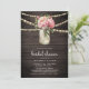 Convites Chá de panela de madeira de Mason Jar Floral Rosa