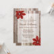 Um chá de panela de inverno com tema de madeira de celeiro e flores de poinsettia vermelha com um centro de diamante. Excelente para um chá de panela de Natal ou chá de panela de férias. Personalize facilmente seus detalhes de evento!