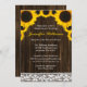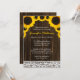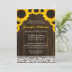 Um chá de panela temático rústico que caracteriza girassóis amarelos em um fundo de madeira do celeiro do marrom escuro com uma borda do laço. Aperfeiçoe para um chá de panela ocidental ou o chá de panela do país.