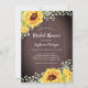 Estes convites de chá de panela apresentam um design de girassol a cores aquáticas com flores do hálito de bebês sobre fundo de madeira. Personalize-os com o seu próprio texto. Estes convites de casamento fazem parte de uma coleção que inclui uma série de artigos de casamento e outros artigos de casamento. Visite nossa loja para ver a gama de produtos que você pode personalizar para o seu dia de casamento.