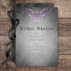 Assuma o misterioso fascínio do seu dia com esta design escura e mínima. Este simples e elegante convite para chá de casamento design apresenta um fundo de uma misteriosa lavagem a aquarela preta, com uma simples mariposa roxa no topo, representando o mistério da noite e a transformação. O texto aparece sobre uma cobertura oval branca macia, dando ao convite uma aparência misteriosa e bela. As carregares traseiras sobre o simples fundo de lavagem a aquarela preta. Criado pela imprensa simplesmente de farmácia.