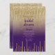 Uma escrita manual roxa, lavanda, caligrafia a tipografia moderna com púrpura e ouro, pingando Convites de chá de panela de casamento de luxo. Este elegante design de monograma é ideal para um evento de tendências e na moda. Personalize este design com sua mensagem e informações personalizadas. Todas as designs são impressas.