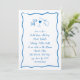 Convide os convidados a comemorar a noiva a estarem com belos convites de chá de panela de inspiração italiana com letras cursivas de estilo manuscrito acentuadas com uma borda de fita escrivada em azul mediterrânico. Ilustrações desenhadas à mão de massas alimentícias com arco, vinho e um limão siciliano completam a design de um olhar de verão na costa de Amalfi. Personalize com as informações do registro da noiva, incluindo um código QR personalizado, no verso. Estes convites elegantes têm uma sensação doce feita à mão e parecem especialmente bonitos em papel Laid texturizado.