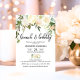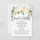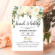 Design de buquê rústico floral simples e elegante pintado à mão de aquarelas (aquarelas) verdes, cor-de-rosa-pincel, bege, champanhe, baunilha, pêssego, rosas de flores brancas/pénia sobre fundo branco e letras negras. Delicar chá de panela de casamento / brunch & bubble convites para esse tema de primavera ou verão. Cartões de fora perfeitos. A parte traseira do cartão tem o nome da futura mrs.