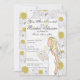 Um chá de panela com uma foto de fundo de margaridas na frente e atrás. A primeira ilustra uma noiva com pele clara e cabelos loiros segurando um buquê de margaridas que corresponde ao fundo. Personalize o texto cor-de-rosa com detalhes da sua ocasião.