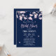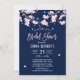 Convites de chá de panela Azuis Marinhos De Flores De Cereja Rosa Elegante.