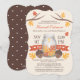 A noiva a ser se apaixonou! Um belo chá de panela de outono com um ramo de carvalho e um design de folha de outono ouro amarelo e laranja com uma faixa de faixa laranja, com corações brancos a flanquear o ano do evento e um jarro de pedras com uma vela acesa e folhas de outono no fundo do pote. As bolotas flanjam cada lado do frasco de vidro e podem ser monogramadas com a parte inicial e o monograma da noiva e do noivo. A parte de trás do convite é marrom-escuro com um padrão cardíaco de polca. Trabalho de arte © Chrissy H. Estúdios, LLC. Todos os direitos reservados.