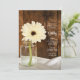 Convide os convidados para uma festa do tipo rancho honrando a noiva para estarem com o charmoso Chá de panela Mason Jar e White Daisy Country Barn. Este Chá de casamento rústico casual, porém clássico e personalizado Invite apresenta uma fotografia floral, ligeiramente melhorada, de um boião de latas de vidro cheio de uma flor de margarida branca solteiro e de um fundo de madeira marrom e curada. Inspo perfeito para o seu evento informal de celebração de temas de fazenda.