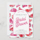 Chá de panela de melancia de aquarela, bonito e moderno. A parte traseira apresenta um padrão de melancia correspondente para uma ajuda extra de diversão. Personalize o texto para se adequar à sua celebração. Arte original de Nic Squirrell