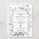 Uma variedade de flores castanhais de cor azul-tonal e verde faz o fundo deste chá de panela. Um quadro arquivado com borda prateada exibe todas as informações do evento. Perfeito para uma flor selvagem com tema ou noiva, casal ou chá de casamento, mas você pode personalizá-lo para uma festa de noivado, comemoração de aniversário, chá de fraldas ou festa de aniversário. Disponível com produtos correspondentes.