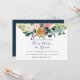 Flores cor-de-rosa, marfim e marinho azuis, cor-de-rosa, buquês com folhagem verde e um círculo esbranquiçado de cobre, branco, fazer moderno de vidro horizontal, com um rolo de tipografia em quadrinhos totalmente editável. +++++++++++++ Adequado para primavera, verão ou outono, festas de noivas do tema do outono.