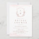 Convites chá de panela de monograma da crista botânica rosa
