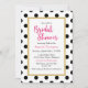 Moderno e tão chique, este chá de panela personalizado de aparência de designer apresenta bolinhas de moda pretas com uma imagem de ouro brilhante e sotaques de letras fuchsia. Pronto para personalizar com os detalhes do seu chá de panela substituindo o texto de exemplo mostrado.