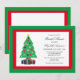 Chá de panela temático de Natal. O convite apresenta um tema de feriado vermelho e verde com uma árvore de Natal e presentes.
