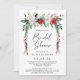 Chá de panela de Natal "Botanical Greenery" - Flores de cor aquosa, brancas e burgundy, assombrosas, com verde natural e bagas de pip vermelhas. O verso do anúncio mostra sua linda foto. Salvar a data é apresentado em uma caligrafia bonito e com script.