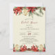 Este Chá de panela de inverno apresenta uma estrutura feita de galhos de abetos, flores de floresta burgundy, cones e galhos num nobre fundo de marfim vintage. Um belo convite é perfeito para um casamento no inverno em cores quentes. Uma atmosfera sensual e um convite brilhante para os dias de inverno.
