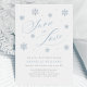 Abrace a magia do inverno com o nosso Chá de panela Moderno da Neve no Amor. O delicado design apresenta flocos de neve prateados dispersos e azuis-claros enfeitados com pequenos sotaques de pérolas, criando um aspecto chique e elegante. Esse convite reúne a beleza do inverno de forma refinada e sofisticada, perfeita para uma celebração cheia de elegância e charme. Ideal para um chá de panela de inverno, essa design capta o espírito sereno e festivo da estação.