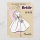 Um design de século de médio com um toque retrorreflector com desenho de linha de uma noiva em rosa e branco sobre um fundo de mudança de cor neutra. Inspirados em padrões de vestidos e ilustrações de moda dos anos 50 e 60. Um design personalizável para você personalizar com seu próprio texto, imagens e ideias. Uma imagem de arte digital original.