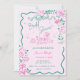 Um moderno chá de panela de escrivagem, branco e engraçado, seguindo a última tendência do papel de carta de casamento. Um quadro ondulado e ilustrações de flor silvestre fazem dele um convite de tendências contemporâneas perfeito. Cor rosa e verde e um arco moderno.
