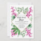 Este é um convite bonito e alegre do Chá de panela de Orçamento Tropical Floral de Aquarela. A parte traseira contém as iniciais do casal, o endereço do site do casamento e o código QR que você pode alterar ou excluir completamente. Este design de bico chic apresenta elegantes folhas tropicais de aquarela e flores cor-de-rosa pinceladas em uma peça central geométrica dourada para enquadrar seu texto. Você pode mudar facilmente os detalhes de sua ocasião; cor do plano de fundo; estilo, cor e tamanho da fonte com os botões Zazzle Edit Design e Personalize.