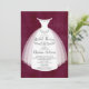 Chá de panela moderno de noiva com um lindo vestido branco de noiva colocado sobre um fundo de cor d'água entrelaçado. Sacudir o convite para o chá de vestidos de chic e na moda para ver uma cor d'água equivalente paprika floral para um toque especial extra. Convidar chá de panela contemporâneo para um chá de panela, chá de panela de verão, chá de panela de outono ou chá de panela de inverno. Visite nosso compro para ver esta design popular de noiva em várias cores.